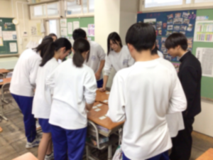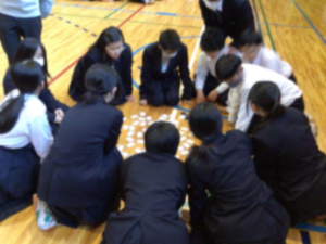 午前中は学年ごとに『百人一首大会』を行い、一枚でもたくさんの札を取ろうと、集中して取り組みました。札を取った生徒に対して、拍手をする姿も見られました。あたたかい雰囲気の中、楽しく『百人一首大会』を行うことができました。