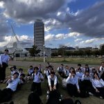 もう直ぐ淡路島が見えると 生徒達をいざなうのです