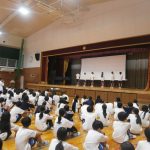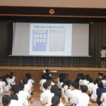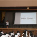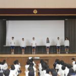 前期を締めくくる生徒の、生徒による、生徒のための総会を行いました。執行部の5人と生徒会の委員長6人が前期を総括し、後期に向けての思いを全校の前で話しました。学習委員会「よさがある学習」、生活委員会「意識(時間・挨拶・身なり)、整美委員会「美しい環境」、給保委員会「改善」、文化委員会「全員で」、情報委員会「基礎を大切に」とそれぞれが委員会のテーマを決めて頑張った前期が幕を閉じます。生徒会の担当教諭(奥村先生)は、「11人のメンバーは、学校をよくしていこうと自分の時間を使って動いてくれたし、全校のみなさんもよくそれに応えてくれた。思いに応える学校をこれからも作っていこう」と生徒を激励しました。