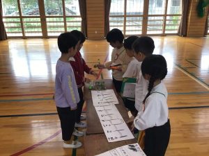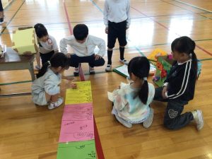 2年生は、1年生が楽しめるようにおもちゃを作ったり、遊び方を丁寧に説明したりお兄さんお姉さんらしく進めることができました。1年生は、笑顔いっぱい楽しく遊ぶことができました。
