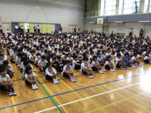 体育館に響き渡る校歌の歌声からも、後期のやる気が伝わってきます。