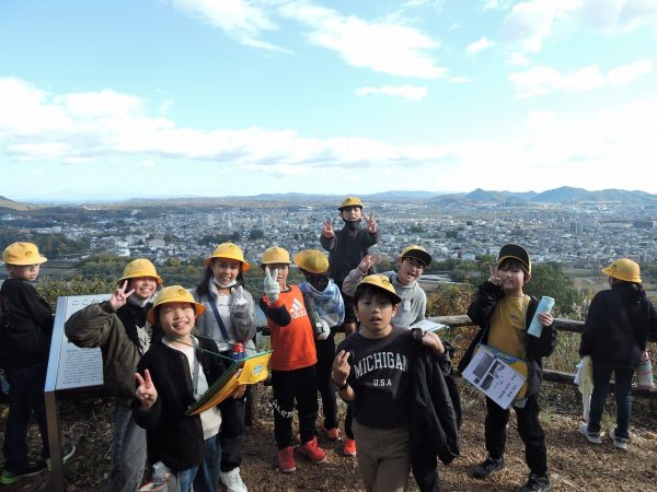 午後は、伊木山フィールドワークを行いました。班で話し合ってルートを決め、問題を解きながら山登りをしました。歩き慣れない山道なので、すべりそうになったり、仲間と離れてしまいそうになったりしましたが「大丈夫?」「休もうか?」などの声をかけながら仲間を思いやって活動することができました。