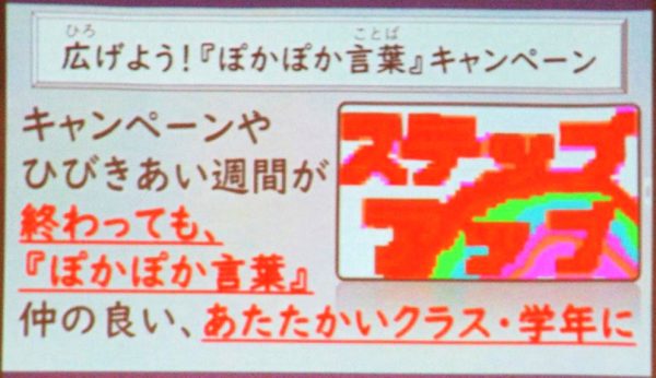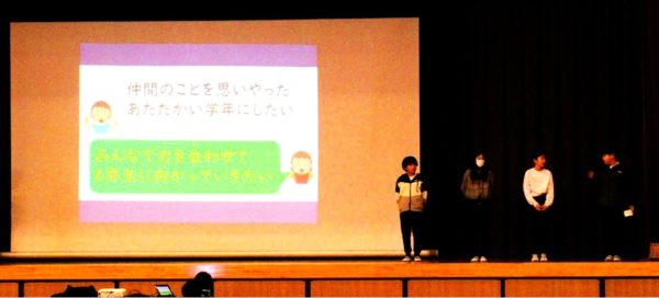 ホーム > 学校だより > 12月3日 ひびきあい集会 2025/12/04 12月3日、全校でひびきあい集会が行われました。各学年で取り組んだ「先駆けあいさつキャンペーン」「ぽかぽか言葉」「思いやりの姿の紹介」等の様子やがんばり表が発表されました。どの学年も友達を思いやる姿や言葉がたくさん紹介され、体育館が心温まる雰囲気になりました。 今日の集会で発表した友達への思いやり、優しさをこれからも続けていけるようにしていきましょう。 学校だより