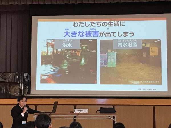 また別日にはクリエ株式会社より安藤様、川村様を講師としてお招きし、水害や土砂災害の被害、備えについても教えていただきました。