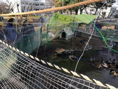 カモの名前を知らせる看板まで作ってくださってあったので、足の輪の色をたよりにカモの名前を探していました。