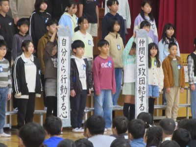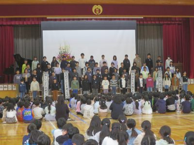 5年生のみなさんは、6年生から引き継いだ大切なことを伝え、合唱の歌声で最高学年への決意を発表しました。