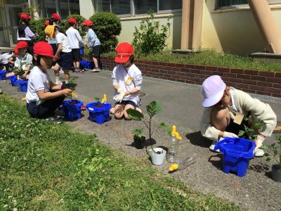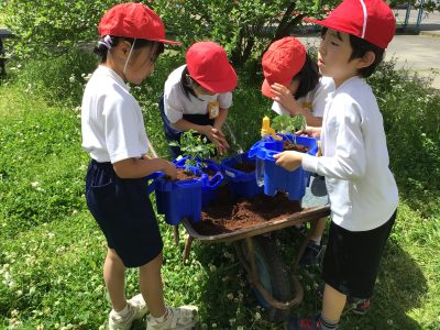 ホーム > 学校行事 > 2年生 野菜の苗を買って植えました 2025/05/07 5月7日(水)、2年生のみなさんが、生活科の学習で、校区の佐藤商店さんへ行き、野菜の苗を買いました。 野菜の苗は、ミニトマト、ナス、ピーマン、オクラなど、自分の育てたい苗を買いました。 学校に帰ってからは、自分の植木鉢に、野菜の苗を植えました。 最後に水やりをして、準備完了です。 忘れずに水やりをして、おいしい野菜が育てましょう。観察もがんっばってくださいね。 学校行事