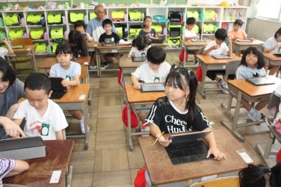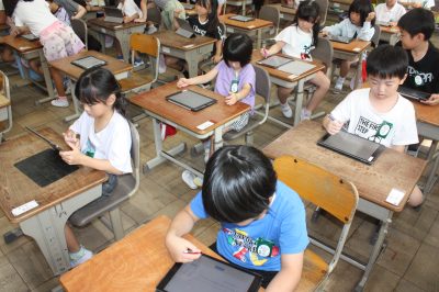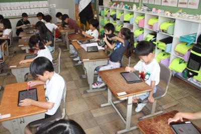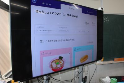 ホーム > 学校行事 > ICTで、楽々給食アンケートをしました 2025/09/17 2025/09/22 9月17日(水)、1年生の皆さんが、給食委員会のアンケートに回答していました。 今日は、ロイロノートのアンケート機能を使って回答をしました。 答えた結果は、給食委員会に送られるとともに、すぐに集計して結果を見ることができました。 那加三小ではいろいろな使い方を学んでおり、子どもたちの情報活用能力が高まっています。 学校行事