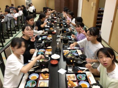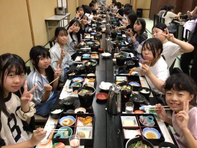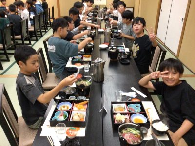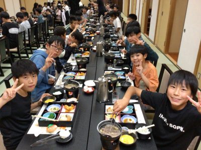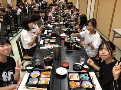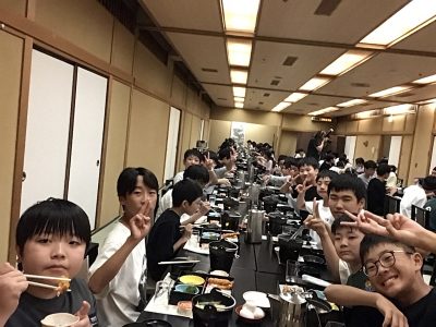 部屋に入って荷物を整理して、夕ご飯を大広間で食べました。すき焼きが美味しかったです。