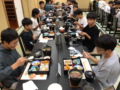 夕ご飯の後は、入浴と学級会に分かれました。学級の話し合いでは、明日に向けて良さと課題を考え合いました。