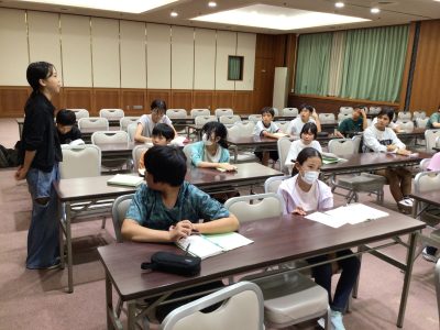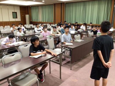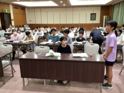今回は嵯峨駅のそばのホテルに泊まりました。着いてすぐ、入館式をしました。
