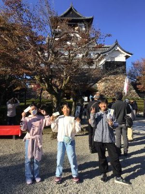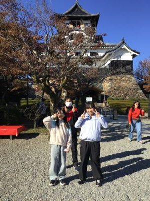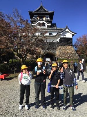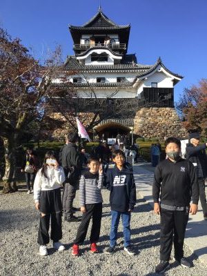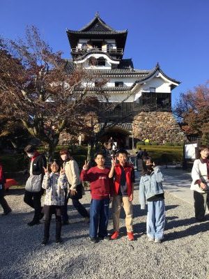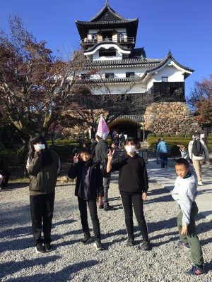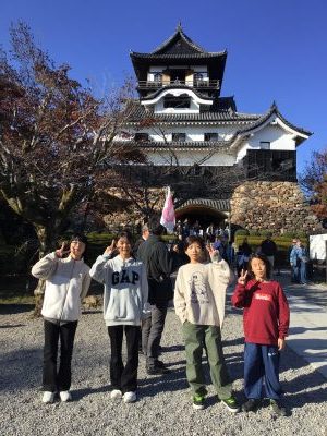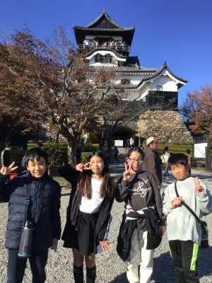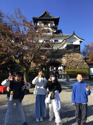 ホーム > 学校行事 > 5年生 宿泊研修報告その2 2025/11/20 11月20日は5年生のみなさんの、宿泊研修の日です。 1日めは、犬山フィールドワークを行いました。 とてもよい天気で、犬山城がきれいでした。 学校行事