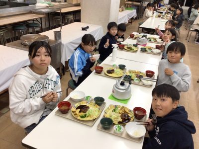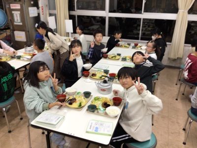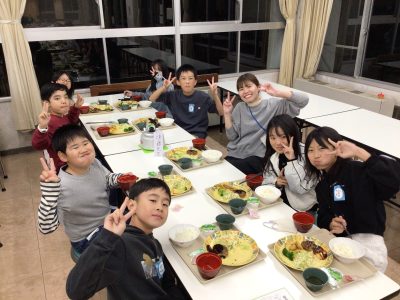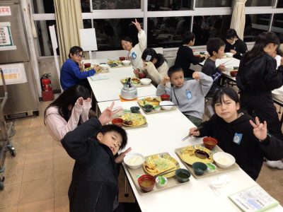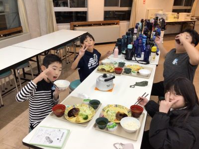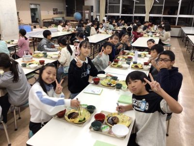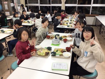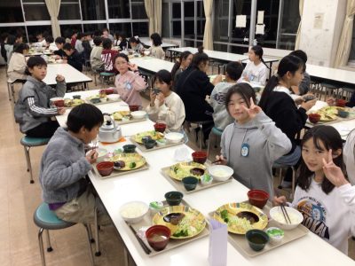 配膳された夕ご飯を、みんなとても美味しく食べました。