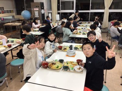 学級の仲間と、初めて食べた夕食は、とても美味しかったです。
