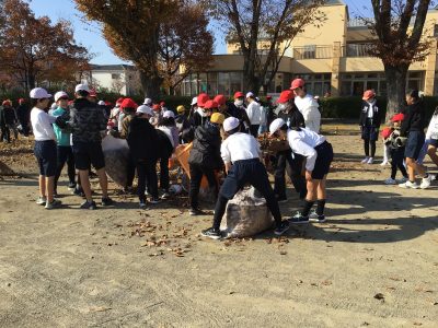 みんなのボランティアパワーで、落ち葉だらけの運動場がとてもきれいになりました。ありがとう!