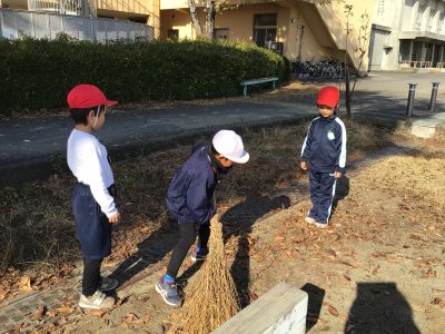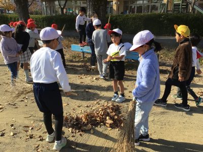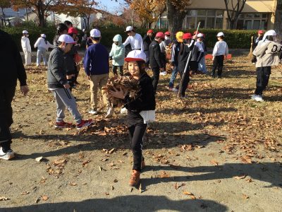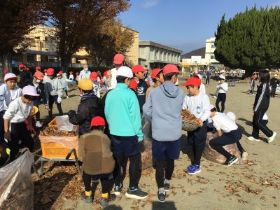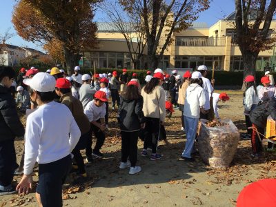 12月1日(月)の青空タイムは、全校で落ち葉拾いのボランティアをしました。