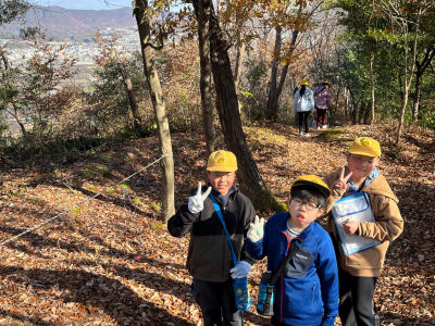 次に、八木山に登山をしました。急な坂を上ったり、標識を間違えたりもしましたが、協力して登山できました。
