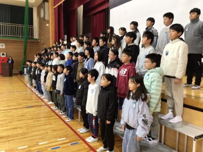 新年初めての校歌の歌声は、素晴らしい響きでした。