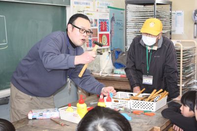 金づちを使うので、くぎの打つ場所や打ち方などを、丁寧に教えてくださいました。