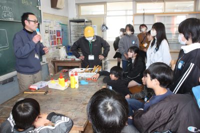 テープカッターの作り方のポイントを、机を回って教えてくださいました。