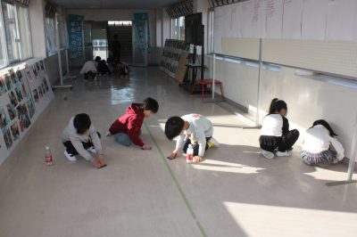 朝の会の前に、渡り廊下を掃除してくれている姿を、那加三小では見ることがあります。