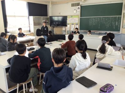 ホーム > 学校行事 > 最後の代表委員会が開かれました 2026/03/10 2026/03/11 3月10日(火)のお昼休み、理科室で代表委員会が開かれました。 本年度最後の代表委員会です。1年間の振り返りの中では、代表委員会をとおした自分の成長を、たくさんの人が話してくれました。 全校のリーダーが集まる代表委員会、すばらしい会になりました。 学校行事