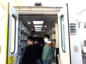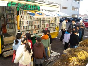 尾崎小に「動く図書館」がきたよ!