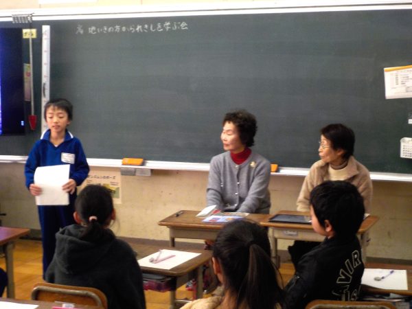 最後に、お二人から「みなさんも大きくなっても尾崎に住んでくださいね。」とメッセージがありました。今後も尾崎地区や尾崎小学校が発展することを願う地域の方々の思いを知ることができた貴重な時間でした。