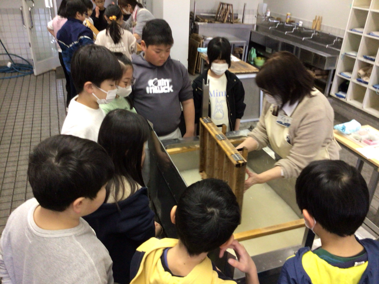 1月28日に美濃和紙にある美濃和紙の里会館、うだつの上がる町並へ、社会見学に行ってきました。美濃和紙の里会館では、実際に紙すき体験を行ったり、館内にある展示品や資料などから和紙の素晴らしさについて学んだりすることができました。うだつの上がる町並では、ガイドさんの話から、和紙作りと商いの関係について学ぶことができました。また、時間を守ったり、グループで協力したりなど規律ある集団行動ができました。