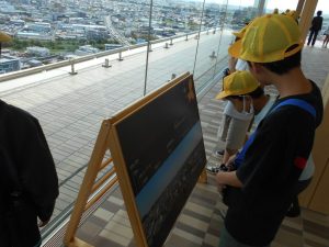 県庁では、普段入ることのない行政の建物に少し緊張しながらも、興味をもって見学しました。建物に使われている伝統工芸に驚き、「これも伝統工芸なの?」、「建物に使われているのがすごい!」といった声が聞かれました。展望台からの景色にも感動し、地域の広がりを感じることができました。