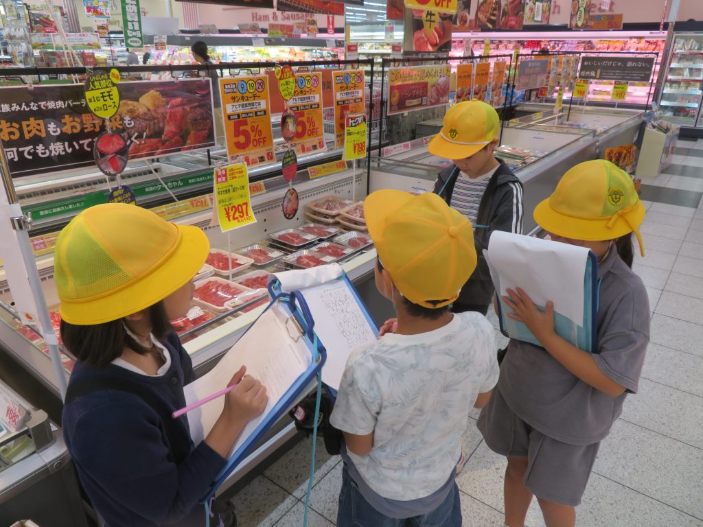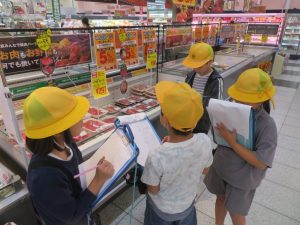 9月25日にアピタ各務原店へ社会見学に行きました。学習の過程で「お店で働く人が、どんな思いでどのような工夫をしているのか」という学習課題を立て、副店長の佐藤さんの話や店内の見学からその答えに迫りました。バックヤードにも入ることができ、普段見られない場所や仕事をしている姿を実際に見ながら、どんな仕事をしているのかという話に聞き入っていました。事前に考えた質問を尋ね、その答えに「そういうことだったのか」と驚きもありました。店内でも商品の配置や並び方や、商品のポップ・掲示の工夫などを探して書き留める姿があり、お店で働く人がどんな思いで工夫しているのか考える足掛かりを得ている様子でした。
