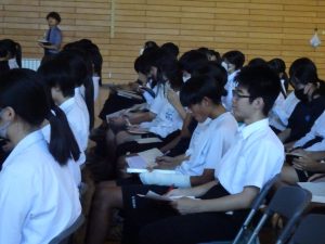 個人懇談も終えて、本格的に進路選択について考えているところです。話を聞いたりメモをとったりする姿も、真剣さが伝わってきました。