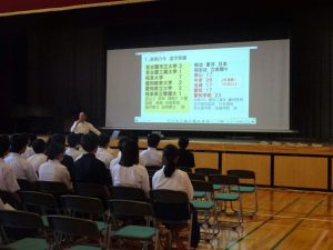 3年生に向けて、第2回の高等学校説明会をPTAの研修委員会との合同開催で行いました。
