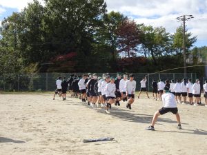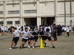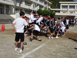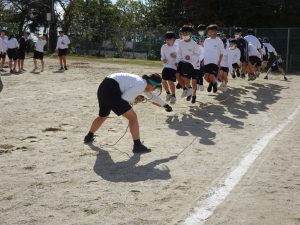 体育祭に向けて昼休みも学級や団ごとに練習を行ってきましたが、今日の昼休みが最後の学級練習の機会となりました。少しでも練習時間を確保しようと、「早く集まって!」の声があちこちから聞こえてきました。