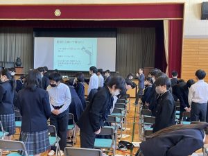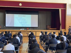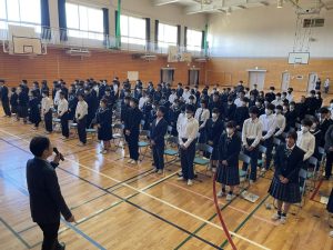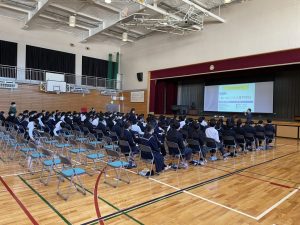来週実施する職場体験学習を前に2年生の生徒たちを対象に、あいちビジネス専門学校の野田秀樹先生をお招きして、マナー講座を行いました。