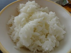 普段は麦が入っていますが、今日のご飯はお米だけです。また、米粒も少し大きく感じました。