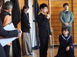 3年生は、財産は仲間だと語りました。部活動で呼応ができるようになり全力で楽しめるようになったこと、体育祭などの行事で声を掛け合い励まし合ったこと、願いをもって本気で取り組む楽しさを味わったこと、うまくいかない時にこそ支え合ったこと、日常生活のルールなどを自分たちでより良く変えていったこと、こうしたことは、本気で仲間と取り組んできたからこそできたことだと語りました。「証」を披露しました。