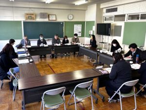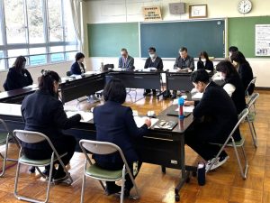 学校から、本校の欠席状況や保健室の利用状況、健診後の治療率、学校環境衛生結果、学校保健活動の報告、学校体育の在り方、食育の取組などについて報告をしました。その後、意見交流を行いました。