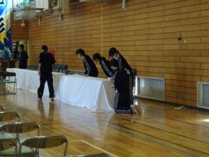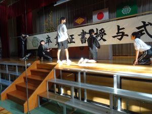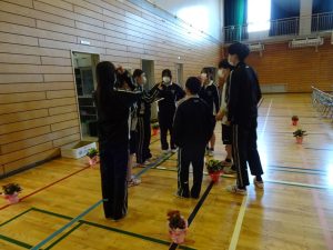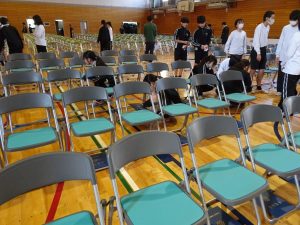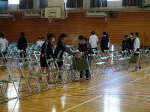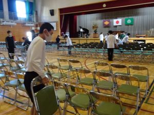 ホーム > 学校行事 > 明日の卒業式に向けて準備 2026/03/05 今日の午後から、2年生の生徒たちが明日の卒業式に向けて体育館などの会場準備を手分けして行いました。リーダーを中心に指示をして取り組みました。 3年生の門出となる会場を、心を込めて準備をしていました。 準備万端整って、明日を待つばかりです。 学校行事 2年